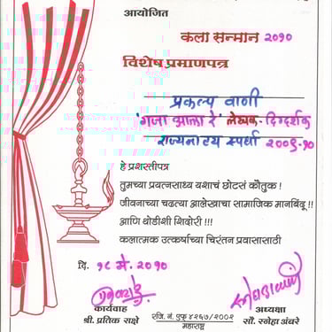 हा मी असाच…..! मी प्रकल्प बाबू वाणी… रायगड जिल्ह्यातील अलिबाग तालुक्यातील फोफेरी गावचा… लहानपणापासून T.V , सिनेमा.. नाटकाच वेड….! मी जातीने वाणी.. पंचक्रोशीत कुठे पडद्यावर पिक्चर… एखाद्या गावात नाटक… किंवा शाळांच्या गॅदरींग.. अशा प्रत्येक ठिकाणी बाबा.. किंवा भाऊ चणे फुटण्याचे दुकान घेऊन जायचे… मग त्यांच्या सोबत मी ही जायचो… यातूनच नाटक चित्रपटा बदल विशेष आकर्षण निर्माण झाल….. पाचवीला असताना पहिल्यांदा गॅदरींग साठी वीणा पाटील या मॅडम नी मला नाटकात संधी दिली… अन तेव्हापासुन हे नाटक – बिटक करायच वार माझ्या अंगात घुसल….. दहावीला असताना शाळेच्या निरोप समारंभात एक मीच लिहिलेली मोडकी तोडकी कविता सादर केली.. शिक्षकांनी कौतुक केल… तिथे “ आपण लिहू पण शक्यतो “.. हा शोध लागला.. मग पुढे J.S.M कॉलेज अलिबाग…, N.S.S कॅम्प…, युथ फेस्टिवल ते प्रयास सांस्कृतिक मंडळ, अलिबाग… या सर्वा च्या जडण घडणीतून… मी मला नव्याने भेटत गेलो…. माझे नाट्य गुरू स्वर्गीय विजय दादा बारसे… यांच्या तालमीत मी घडलो शिकलो… नेहरू युवा केंद्र सारख्या शासकीय उपक्रमाने सामाजिक कामाची गोडी लावली… माझ्यातील आत्मविश्वास…. नेतृत्व गुण भक्कम केला…. या साठी प्रत्येक वळणावर भेटलेल्या सर्व गुरुजनान चा मी ऋणी राहीन.. अलिबाग शहरातल्या या सार्या धडपडीत… माझ्याच सारखे समविचारी मित्र मला भेटले… अन त्यांच्या सोबतीने स्थापन झाली…. कलारंग सांस्कृतिक सामाजिक संस्था….! 9 / 09 / 2009 साली संस्थेची नोंदणी केली….तेव्हा लावलेला हे रोपटं माझ्या मित्र परिवाराच्या सहकार्याने बहरत गेल… आज रायगड जिल्ह्यातील सामाजिक सांस्कृतिक विभागात काम करणारी संस्था.. कलारंग NGO म्हणुन आकारास येत आहे… सदर संस्थे चा अध्यक्ष म्हणुन मला त्याचा अभिमान आहे… कलारंग वेगवेगळया विभागात कार्यरत आहे.. सामाजिक विभाग , नाट्य निर्मिती , प्रोडक्शन हाऊस , टुरिझम, प्रशिक्षण शिबीर, अन याच बरोबर कलारंग लोक कलापथक म्हणुन जनजागृतीपर पथनाट्य साठी सरकार दरबारी स्वतः ह्याची विशेष ओळख निर्माण केली आहे. तरुणाई च्या डोक्यात सृजनतेचा विचार… व हातात सकारात्मक कार्य कुशलता निर्माण करणे हेच कलारंग चे स्वप्नं घेऊन माझा हा प्रवास असाच कायम चालू राहो हीच देवाकडे प्रार्थना.